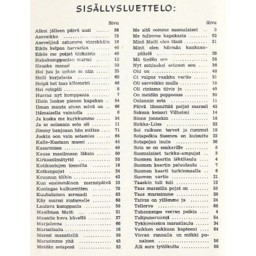 Laulut ovat lähes kaikki sota-ajalta.