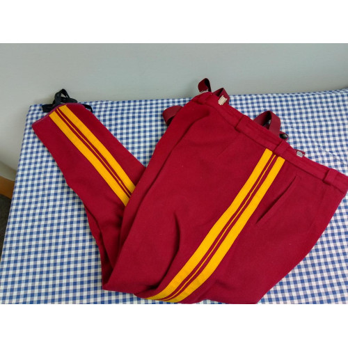 ”Pussihousut”.Alkuperäisestä sota-aikaisesta housumallista otetut kaavat.Matriaali: harmaa SARKA.Tak..